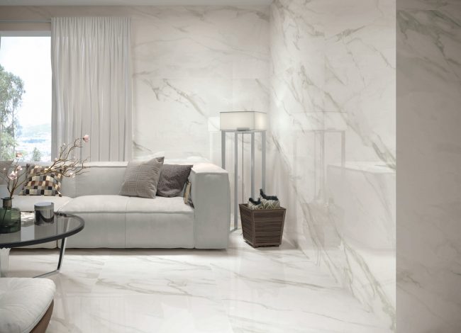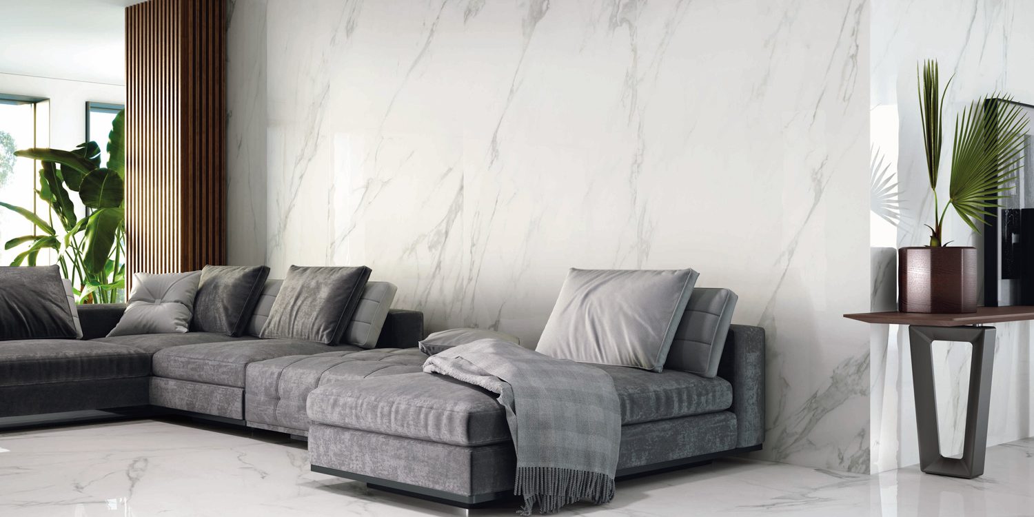 Always Natural Feinsteinzeug Fliesen poliert überzeugen durch ihre helle Marmoroptik im XL Format 120x60cm.